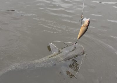 Chytáme pomocí vábničky, trollingu, přívlačí nebo trhací bójí.